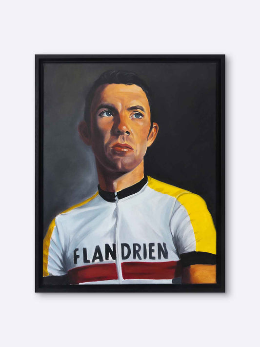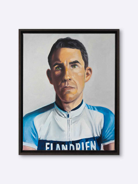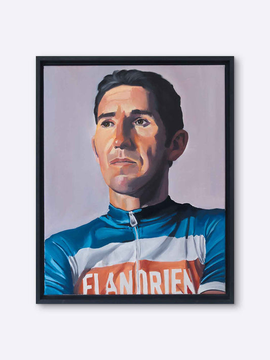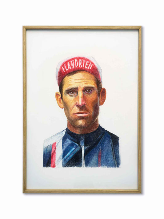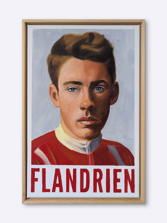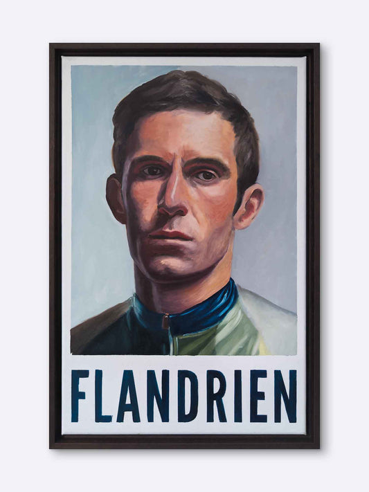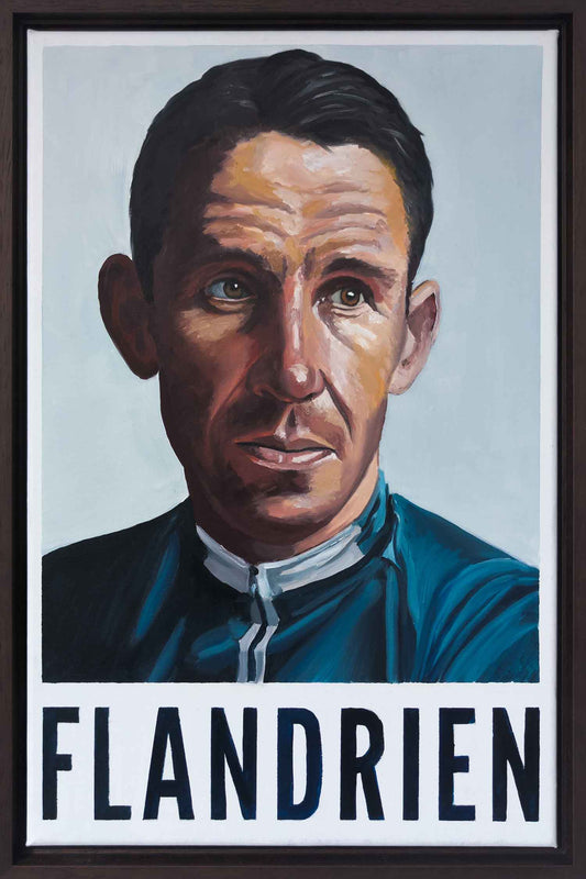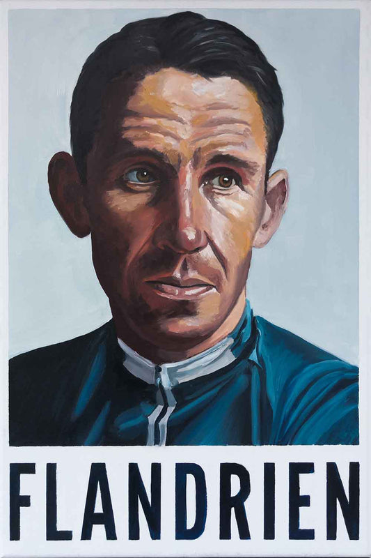 Louis Ingelaere's painting series "Flandriens," is a captivating exploration of the romanticized cycling culture in Flanders during the 1960s, 1970s, and 1980s. The series showcases portrait paintings and drawings of non-existing Flemish men who live to ride, but don’t ride to live.