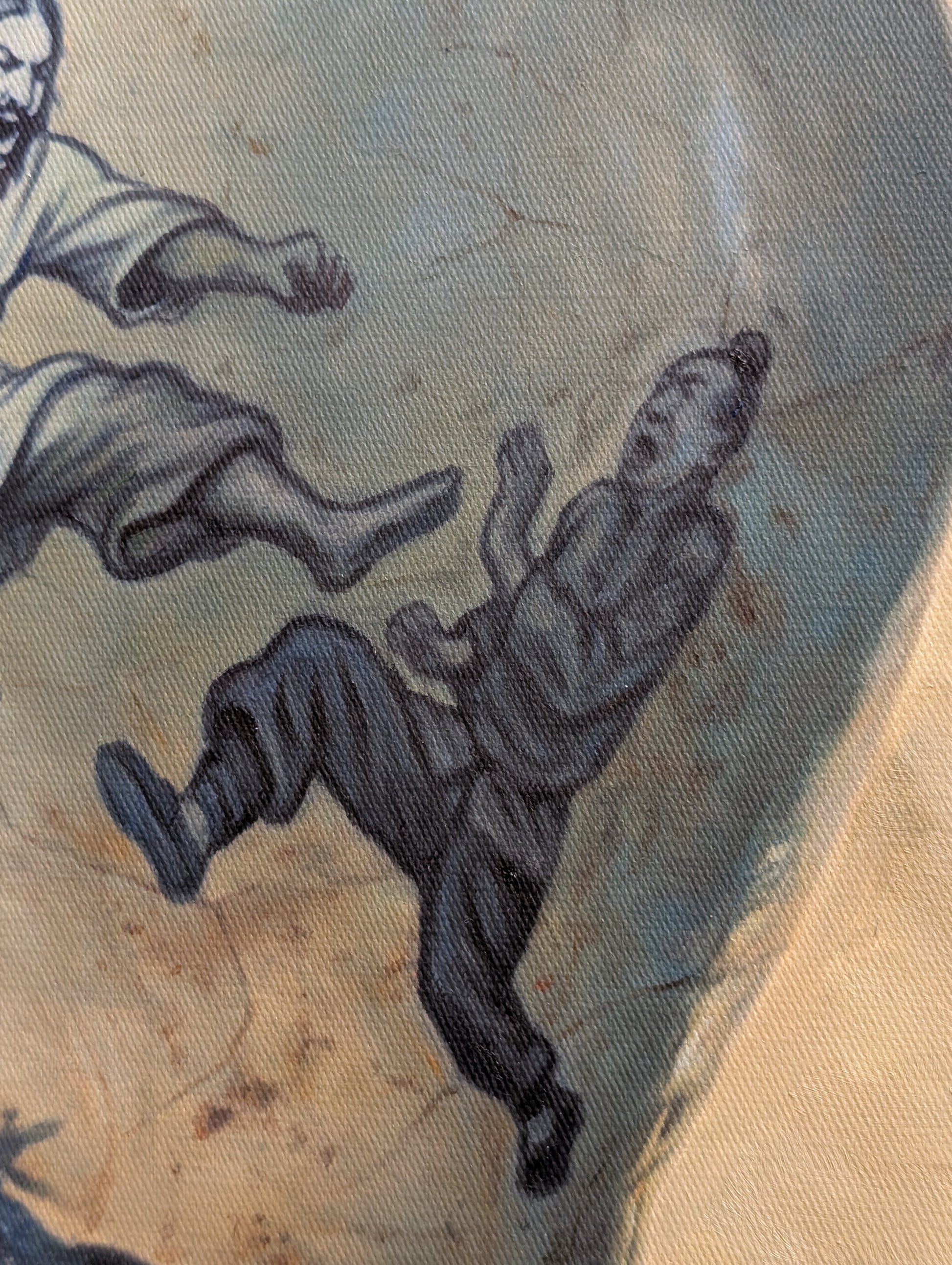 This artefact is painted with oil on canvas and measures 40 by 50 cm.